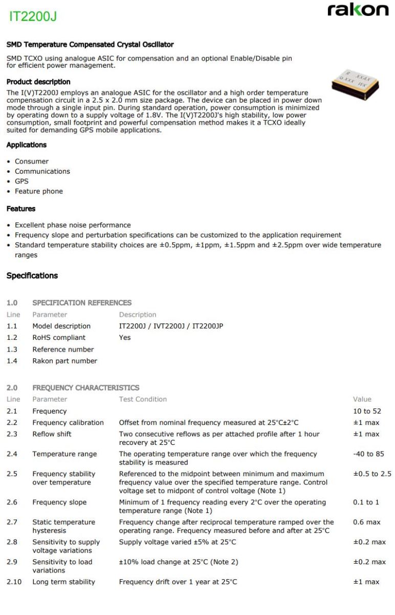 | 型號 | IT2200J (TCXO) | |