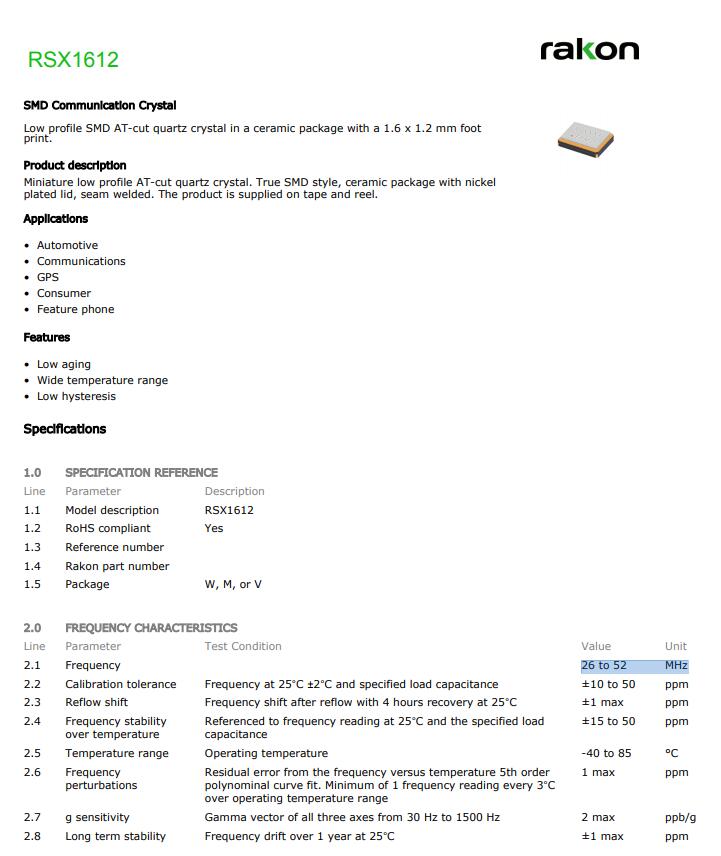 更多>>瑞康晶振,RSX1612晶振,1612Crystal