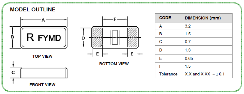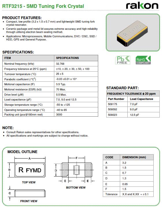 | Load capacitance (pF) | 7.0, 9.0 and 12.5PF |