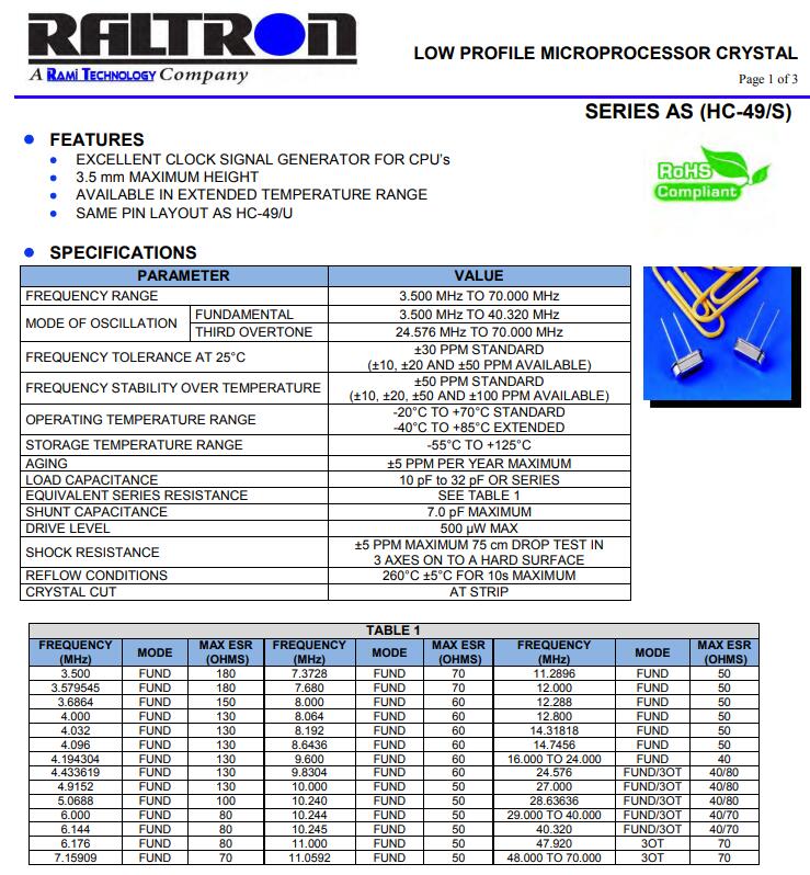 拉隆晶振,AS插件晶振,HC-49/S晶振