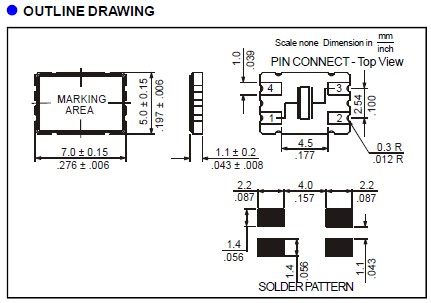 Raltron晶振,H13-19.200-16-5050-EXT-TR,6G以太網晶振尺寸圖