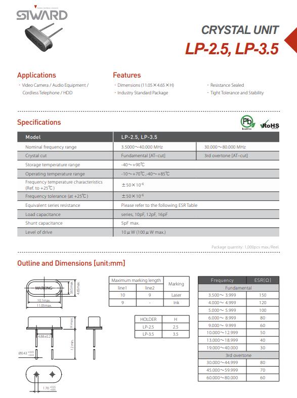 希華晶振,LP-2.5晶振,49插件晶振引腳焊接型石英晶體元件.工廠倉庫長時間大量庫存常用頻點,.高精度的頻率和晶振本身更低的等效串聯電阻.常用負載電容,49/S石英晶振,因插件型鏡頭成本更低和更高的批量生產能力.主要應用于電視,機頂盒,LCDM和游戲機家用常規電器數碼產品等的最佳選擇.符合RoHS/無鉛.