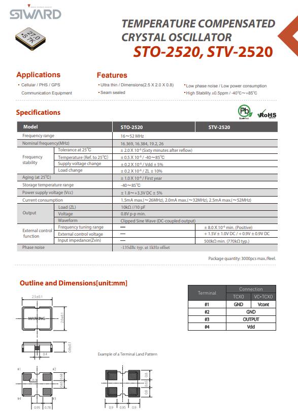 希華晶振,STO-2520,STV-2520晶振,2520小體積晶振,體積小,焊接可采用自動貼片系統,產品本身小型,表面貼片晶振,特別適用于有小型化要求的電子數碼產品市場領域,因產品小型,薄型優勢,耐環境特性,包括耐高溫,耐沖擊性等,在移動通信領域得到了廣泛的應用,晶振產品本身可發揮優良的電氣特性,滿足無鉛焊接的高溫回流溫度曲線要求.