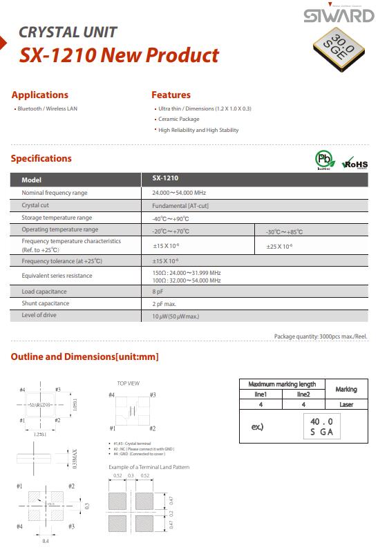 希華晶振,SX-1210晶振,1210迷你型晶振,體積小,焊接可采用自動(dòng)貼片系統(tǒng),產(chǎn)品本身小型,表面貼片晶振,特別適用于有小型化要求的電子數(shù)碼產(chǎn)品市場(chǎng)領(lǐng)域,因產(chǎn)品小型,薄型優(yōu)勢(shì),耐環(huán)境特性,包括耐高溫,耐沖擊性等,在移動(dòng)通信領(lǐng)域得到了廣泛的應(yīng)用,晶振產(chǎn)品本身可發(fā)揮優(yōu)良的電氣特性,滿(mǎn)足無(wú)鉛焊接的高溫回流溫度曲線要求.