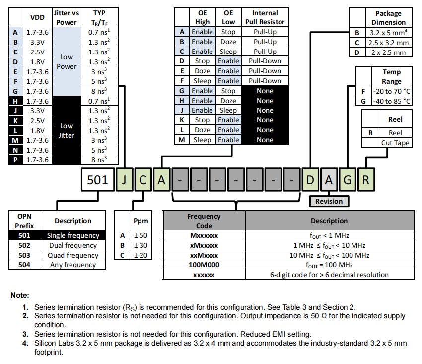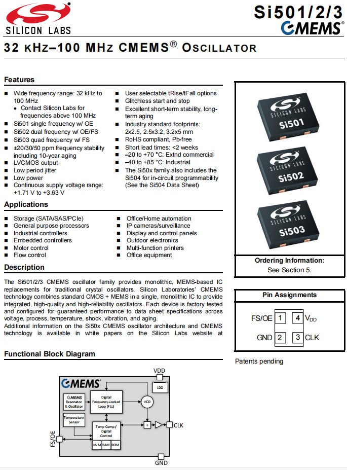 501JCAM032768BAF,Si501振蕩器,Silicon四腳貼片晶振,辦公設備晶振,規格表