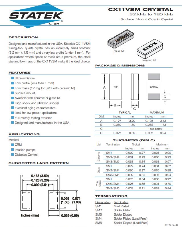 美國STATEK晶?振,CX11VSM晶振,3215晶體諧振器超小型表面貼片型SMD晶振,最適合使用在汽車電子領域中,也是特別要求高可靠性的引擎控制用CPU的時鐘部分.