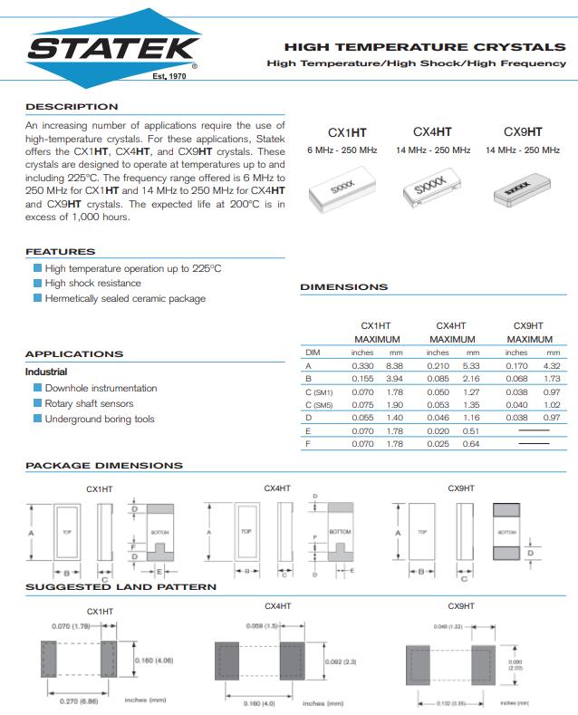 STATEK晶振承諾保護環境,重視員工、客戶和公眾的健康和安全.我們從事任何活動,都要以注重安全和環保方式,并考慮到生態系統的復雜性和相關性.進口STATEK晶振,CX9HT型號晶振,二腳晶體諧振器
