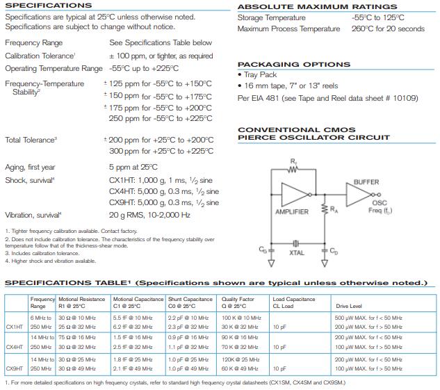 | Statek晶振規格 | 單位 | CX9HT貼片晶振頻率范圍 | 石英晶振基本條件 |