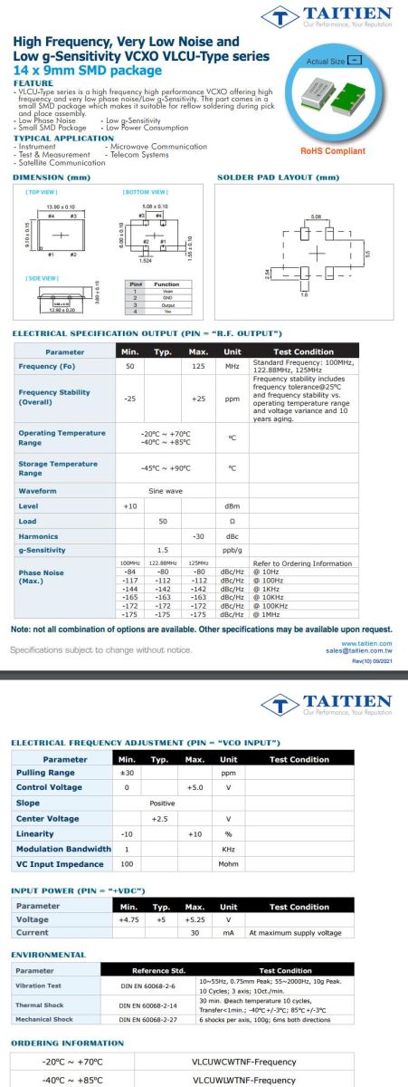 | Frequency (Fo) | 50~125MHZ | Standard Frequency: 100MHz, 122.88MHz, 125MHz |