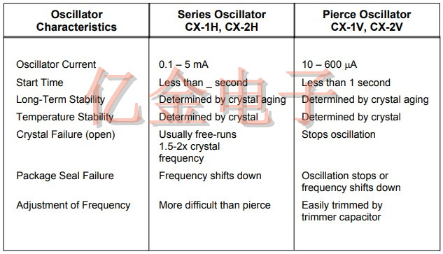 石英晶振或晶體振蕩器類型的選擇主要取決于產品對于晶振性能要求.表2總結了穿孔和穿孔的性能特征系列振蕩器.CX-1V水晶有比CX-1H更高的Q值因為它密封在真空包裝中.該CX-1H晶體約為3至5時間更高的運動阻力(Q值更低)因為它是密封的氣壓.