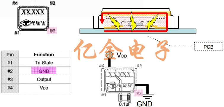 來自TAITIEN Crystal Oscillators的EMI 對于TATIEN石英晶體振蕩器,頂部金屬蓋電氣連接GND端子.