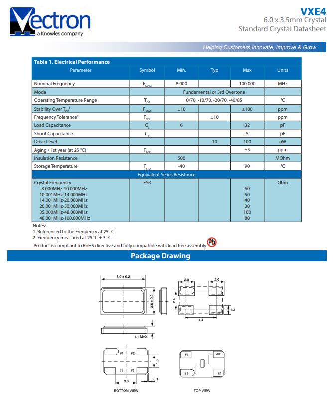 維管晶振,VXE4晶振,6035四腳晶振小型貼片石英晶振,外觀尺寸具有薄型表面貼片型石英晶體諧振器,特別適用于有小型化要求的市場領域,比如智能手機,無線藍牙,平板電腦等電子數碼產品.晶振本身超小型,薄型,重量輕,晶體具有優良的耐環境特性,如耐熱性,耐沖擊性,在辦公自動化,家電相關電器領域及Bluetooth,Wireless LAN等短距離無線通信領域可發揮優良的電氣特性,滿足無鉛焊接的回流溫度曲線要求.
