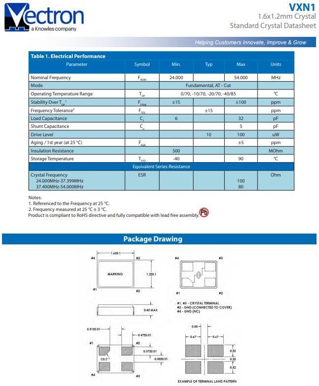維管晶振,VXN1晶振,1612小體積晶振