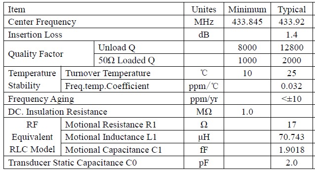 3030聲表濾波器R433.92M規格圖