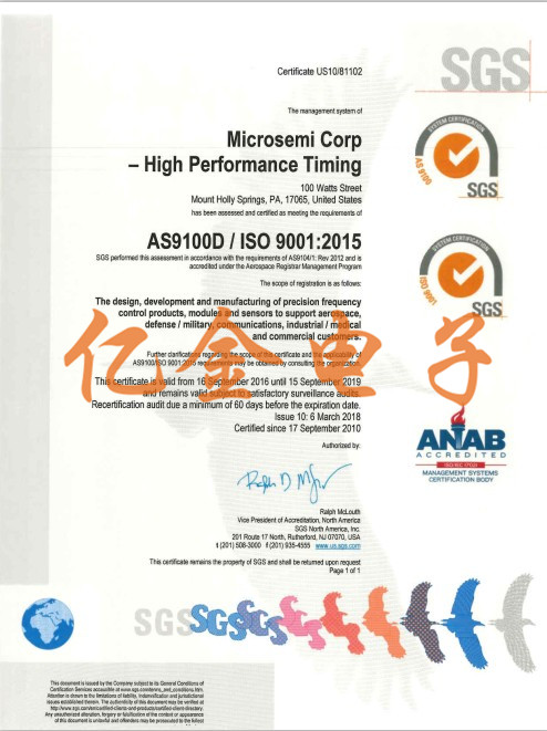 Vectron晶振集團被認證為AS9100供應商.AS9100是基于一套的航空航天工業的質量管理標準.(QMS)國際航空航天質量集團(IAQG)制定的標準,滿足嚴格的質量要求和獨特的要求,符合國防和商業航空航天業的需求.Vectron晶振符合AS/EN9100標準要求的認證主要針對領域直接影響可靠性并產生從初始設計到供應鏈,生產,測試和驗證的穩健過程. AS9100認證類似于ISO9001:2000,其中有近100項額外要求適用于航空航天,并確保晶振產品的每個階段從計劃,采購和制造到裝運的實現受到控制,以便交付符合客戶要求的產品要求.