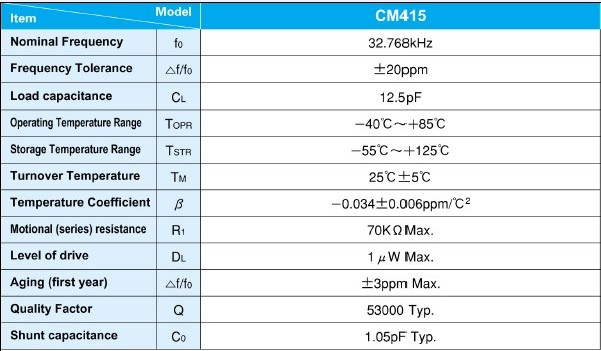 西鐵城晶振CM415,CITIZEN晶振,貼片晶振32.768K