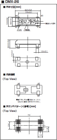 DMX-26晶振,日本32.768K貼片晶振,大真空株式會社,陶瓷面晶振,日本進口的32.768KHz系列晶振產品多元化,外觀尺寸有多項選擇,有個優勢則是可以和幾個知名晶振品牌之間產品交替替換使用,例如大真空的CM315D,精工晶振的SC320S,大真空的FC-135,KDS的DST310S這四款的32.768K外觀尺寸一樣,產品頻率,精度,負載都可以達到相同,所以消費者在使用方面可以得到很好的保障.