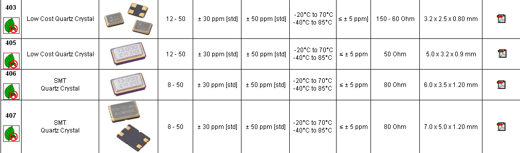 | 頻率公差@ 25°C | ±10ppm, ±15ppm, ±20 ppm, ±30 ppm, ±50 ppm | ||||