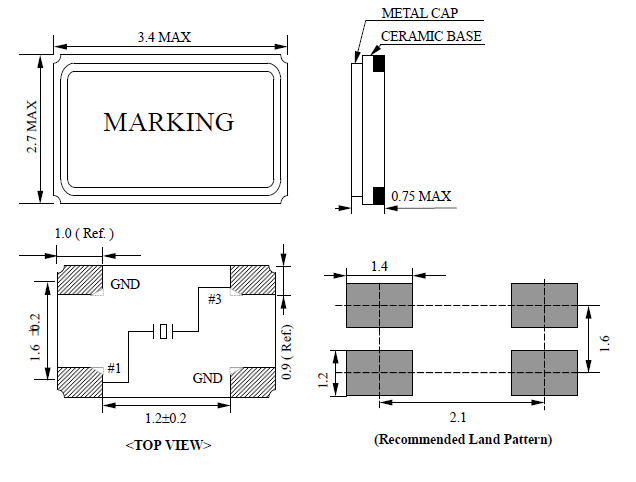 | 頻率公差在25°C±2°C | ±10 ~ ±50 ppm (TYP.) |