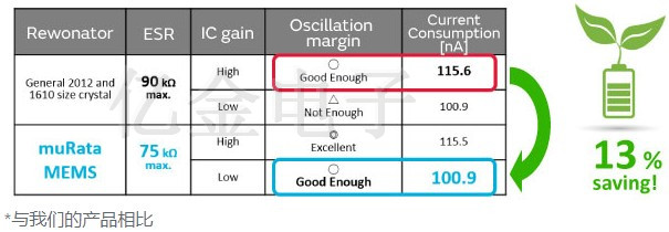 32.768kHz MEMS諧振器可以利用低ESR特性來降低IC增益.這使得能夠減少晶振晶體振蕩電路的電流消耗和整個組的功耗.