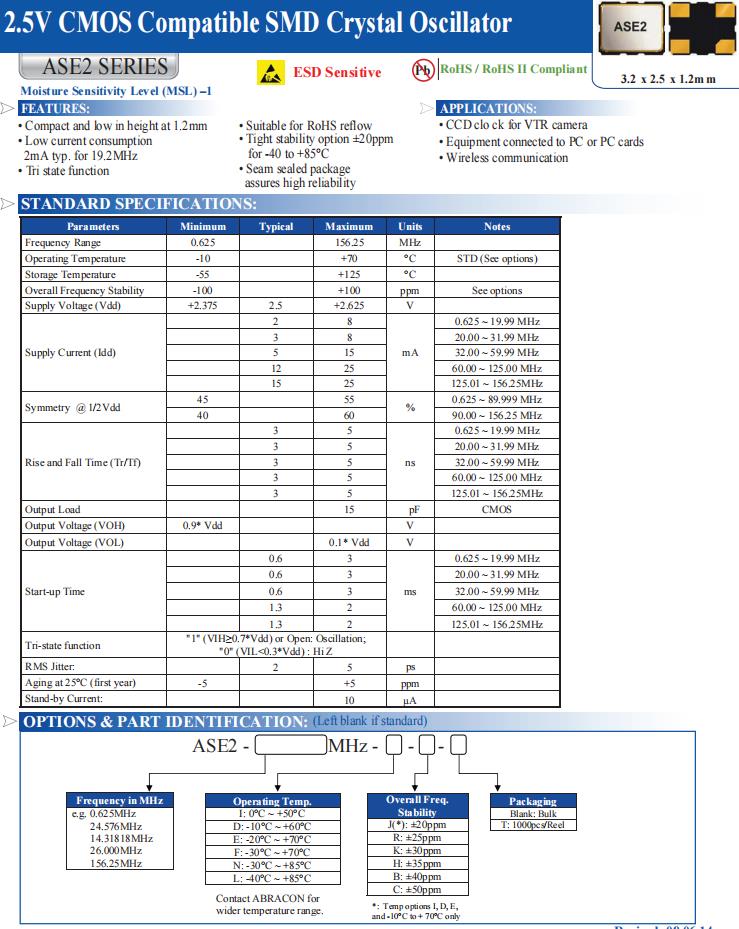 | ASE2-25.000MHZ-ET | Abracon晶振 | ASE2 | XO (Standard) | 25MHz | 2.5V | -20°C ~ 70°C |