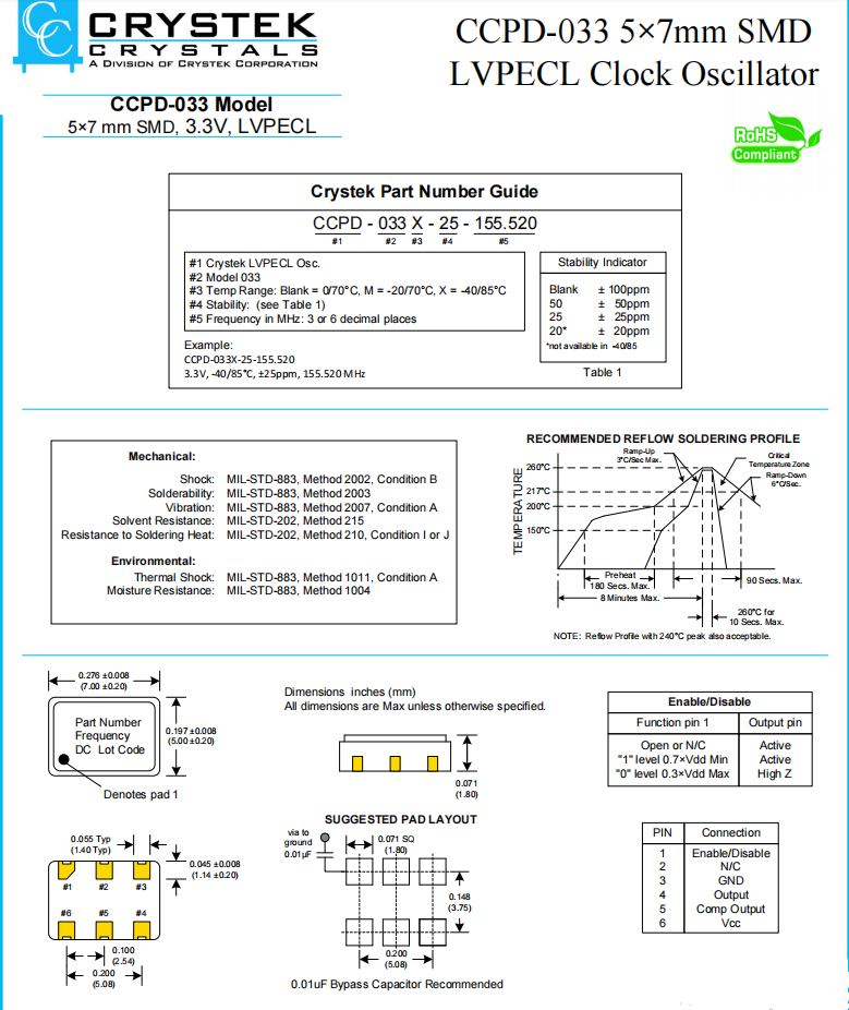 | CCPD-033X-50-125.000 | Crystek晶振 | CCPD-033 | XO (Standard) | 125MHz | ±50ppm |