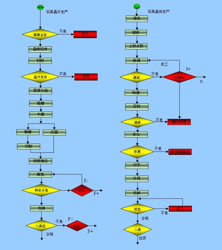 下面對照右邊圖石英晶體生產幾項重點做簡單介紹.一、晶體的焊接:現在大部分工廠為了提高工作效率對于貼片式石英晶振都采用自動化貼片機,在焊接時要確保溫度不能過高否則會破壞晶體特性還要再三確定安裝溫度和時間,安裝時切記不能用鑷子和硬件工具夾具也不能直接接觸IC表面.二、溫度特性:一般正常最理想的溫度為:+15°C 至 +35°C,濕度 25 % RH 至 85 % RH不能過高也不能過低.三、晶體的老化:老化就像人的年齡隨著歲月的而不斷的增加人體健康也大不如青少年勞動能力也逐漸下降,晶振老化大概意思也一樣產品用久了材料和特性會發生微小變化,現在對于要求老化率達到年老化以前的日老化幾天或者十幾天就可以完成,測量老化率也要在一定的溫度范圍下現在國家規定對老化鑒定條件是:85℃,30天.四、鍍薄前后應考慮烘箱里能充氮氣:在鍍薄前要進行離開轟擊清洗而后上架點膠再微調進行高溫烘烤,以達削除應力的影響.為了防止氧化晶振殼內部也要充高純度氮氣.五、檢測:成品測試于檢測部人工逐個測試,也有大部分工廠用機器篩選但是這樣并不能達到精確效果,出到客戶手中可能會有大部分不良為了避免減小不良量億金采用人工檢測,六、產品包裝:在包裝時必須要保證密封性好,若是包裝漏氣里面的石英晶體產品容易與空氣里的氧氣接觸從而產生氧化最終導致上不了錫.