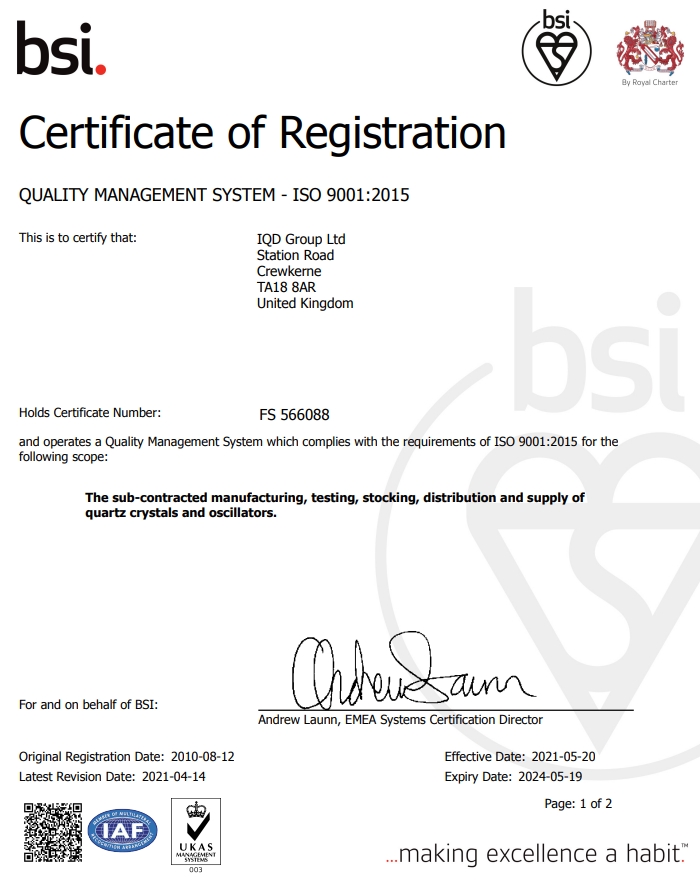 首頁晶振行業(yè)動態(tài) 高標(biāo)準(zhǔn)的質(zhì)量管理體系彰顯IQD晶振的品質(zhì)態(tài)度