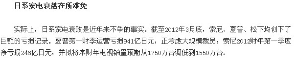這次釣魚島事件與之前簽訂的《馬關條約》密切相關,日本一次次潛入中國領土釣魚島,直至2012年9月3日日本提出購買該島嶼中方堅決反對,目前是怎樣中國是否達成協議?中國的領土作為中國人怎么會同意自己的東西分給欺凌自己的敵人,今日在網上看到一篇關于釣魚島引發的事件,日系家電上月起在華銷量全線大跌釣魚島事件成衰退催化劑,蘇寧國美一直銷售夏普,索尼,松下,東芝等日資彩電,據調查近月銷售明顯下滑,.jpg)