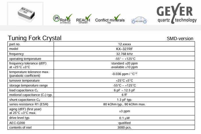 KX-327RF的核心價值,首先體現在其極致精準的參數設計中.它以2.0×1.2×0.6毫米的微小封裝,承載著32.768KHz的標準頻率,9PF的負載電容與20PP的頻率偏差,在方寸之間實現了“小而精”的技術突破.這種精密設計絕非偶然,而是格耶品牌數十年技術積累的結晶.正如鐘表的精準度決定計時價值,進口晶振的參數精度直接影響電子設備的運行穩定性——在嵌入式網絡設備中,它如同“心跳起搏器”,確保數據傳輸的同步與流暢;在測試和測量儀器里,它化身“標尺校準器”,為實驗數據的準確性保駕護航.