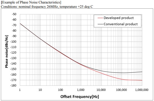 選擇和設計有源晶體振蕩器非常重要,因為調制精度(信號相位和通信設備中的幅度偏差)在很大程度上受到基準的相位噪聲的影響設備中使用的信號源.相位噪聲也與RMS相位抖動(*3)密切相關,因此選擇相位優良的晶體振蕩器噪聲有助于改善相位抖動.