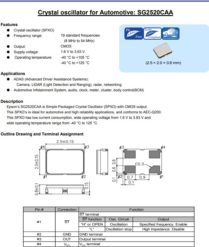 愛普生SG2520CAA具有高響應(yīng)速度的2520封裝汽車級晶振,X1G005951001216,CMOS輸出晶體振蕩器|