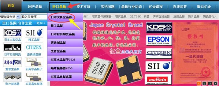 如上圖1第一步,打開億金官網http://www.lnjyxx.com之后鼠標放進口晶振會出現粉色底一欄,可以看到都是日本進口品牌的標簽,客戶只知道是KDS品牌和體積,第二步,鼠標點擊日本大真空晶體那一欄.