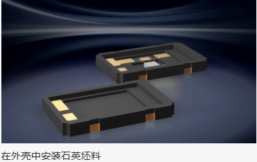 安裝到外殼中 要將毛坯安裝到外殼中,外殼底座首先涂有導電膠。下一步是貼上石英坯料。