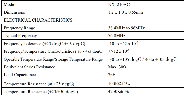 從NX1210AC內置熱敏電阻晶體諧振器探索76.8MHz頻率世界