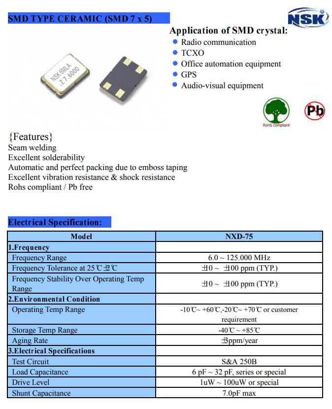 臺灣津綻NSK晶體主要生產產品為全系列石英晶體振蕩子即:石英晶體諧振器,(DIP晶體 SMD 晶體),石英晶體振蕩器 (SMD OSCILLATOR) 和石英晶體控制振蕩器 (SMD晶振 VCXO壓控晶振).